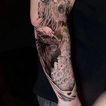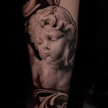 Second year apprentice and growing rapidly, Jesse as a realism artist by trade has charged into tattooing full force. Honing skill and experience with ever piece. Custom script and realism is his wheelhouse!